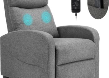 Sweetcrispy Recliner Chair for Adults, Massage Fabric Small Recliner Home Theater Seating with Lumbar Support, Adjustable Modern Reclining Chair with Padded Seat Backrest for Living Room (Grey)